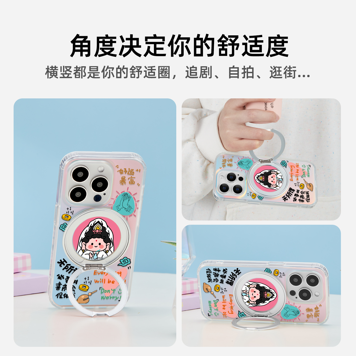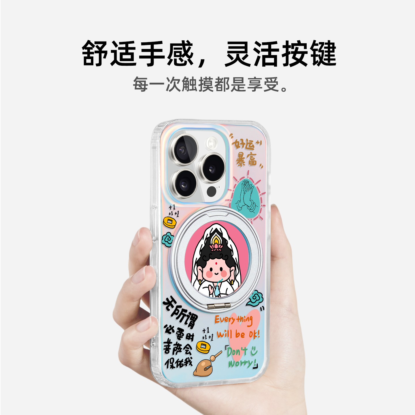 若墨适用苹果17promax手机壳新款iphone16pro女15磁吸magsafe带支架支点14镭射渐变13原创超火创意菩萨趣味