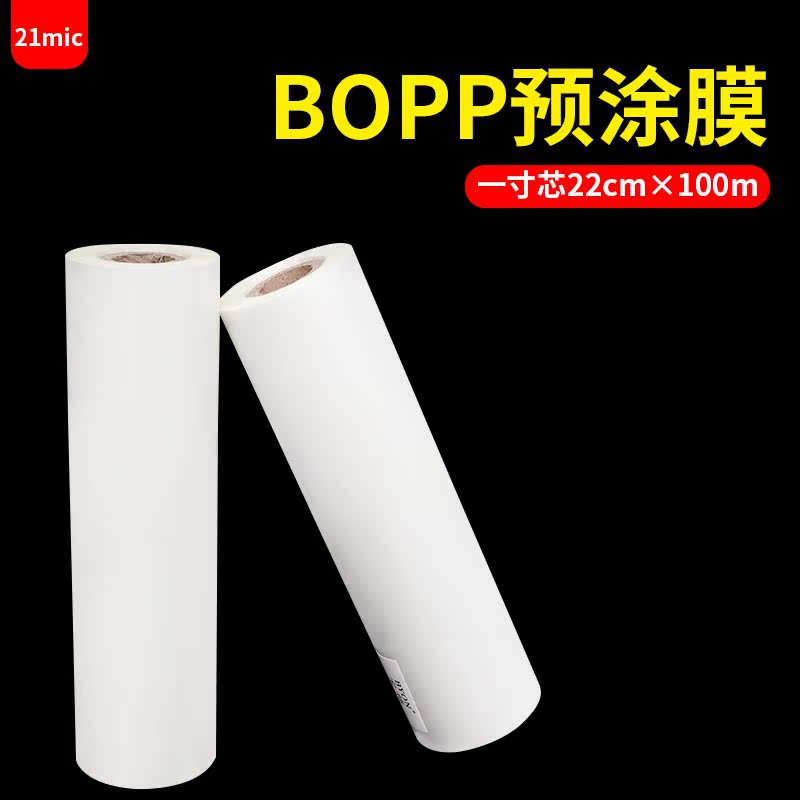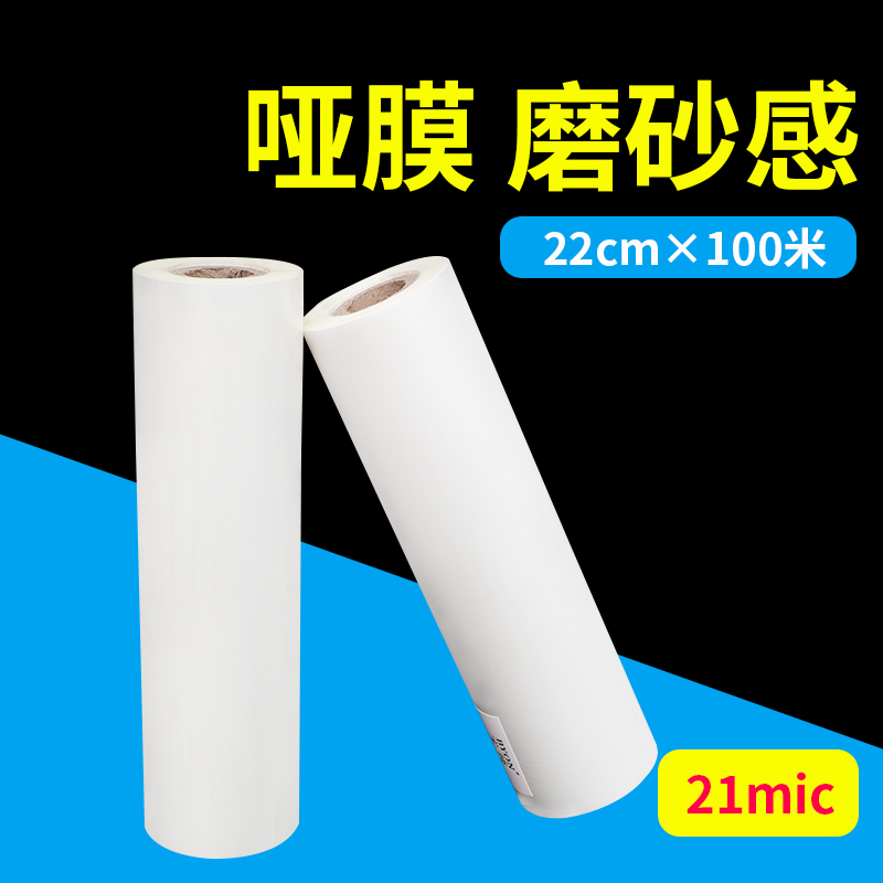 覆膜机预涂膜亚膜透明封面热覆膜1寸芯BOPP单面双塑封卷膜图文相片照片广告塑封热裱膜哑膜21mic长100M宽22CM
