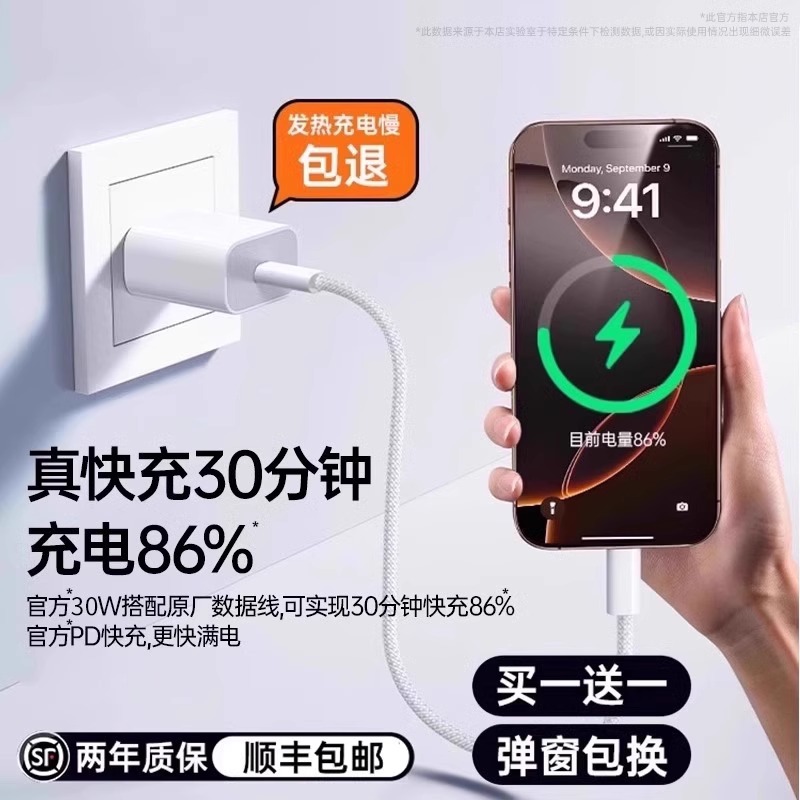坦吉尼专用于苹果16Promax30W充电器15Pro数据线iPhone14PD电源适配器13Pro/12充电线通用氮化镓快充插头套装