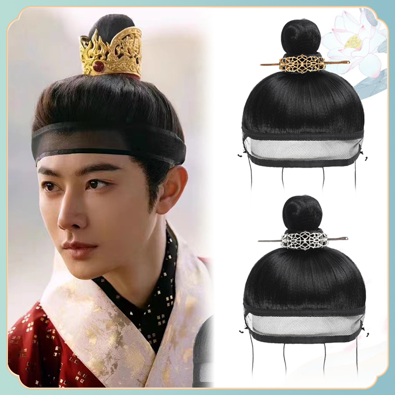 古装汉服明制男士发髻头套抹额网巾假发套一体式发冠网纱束发马尾