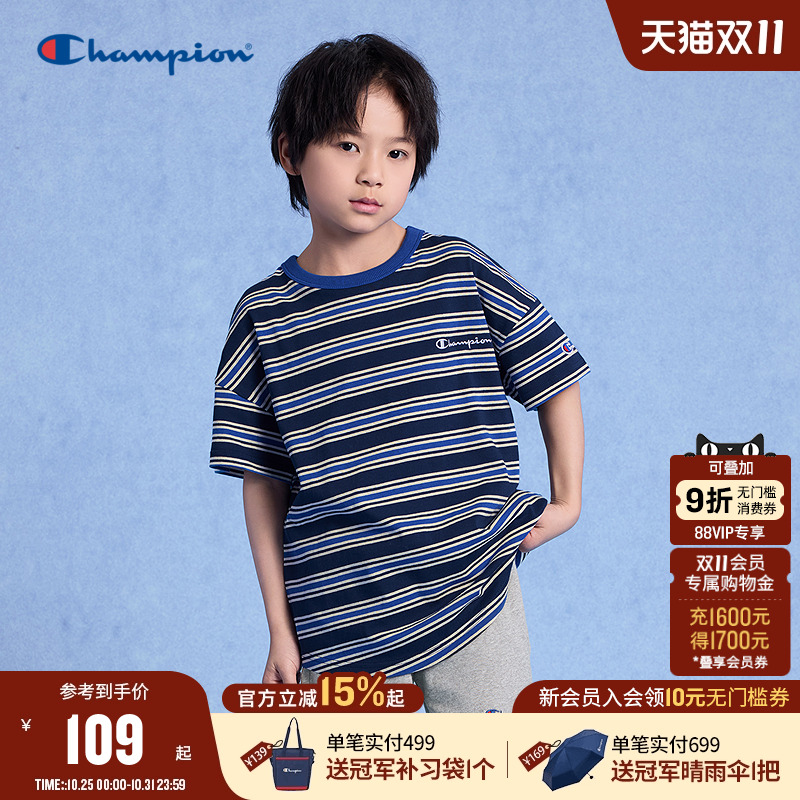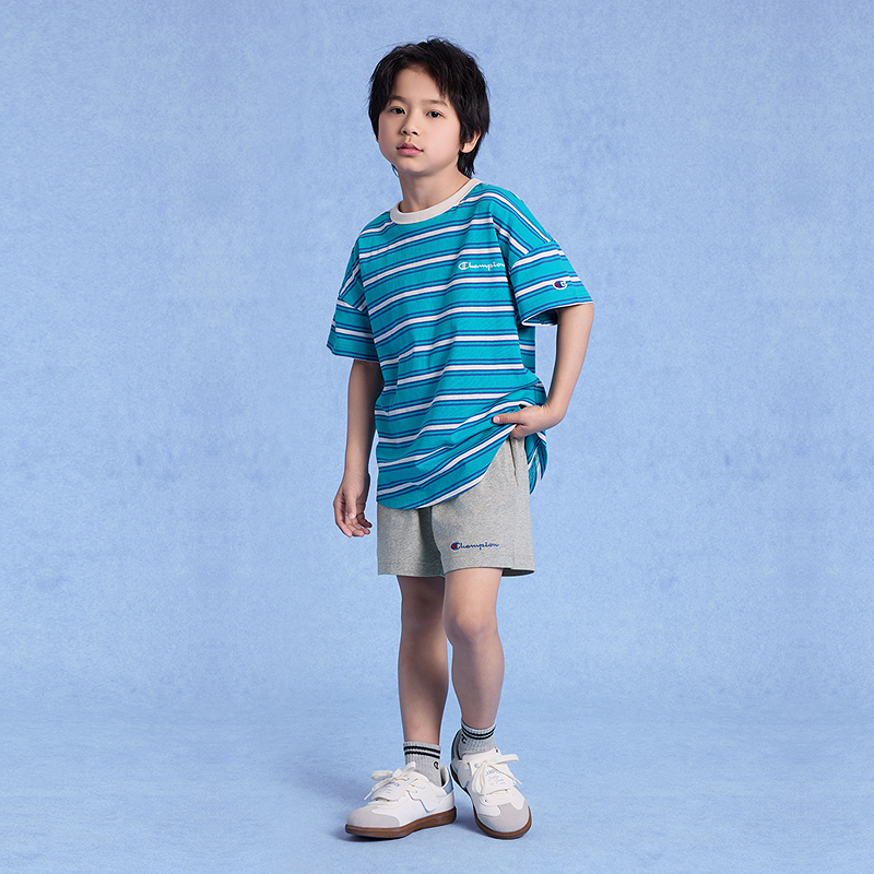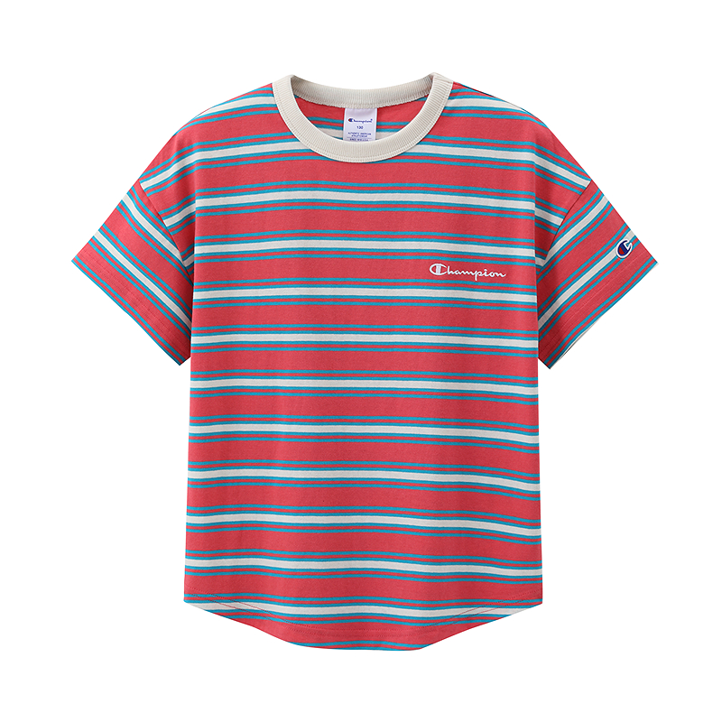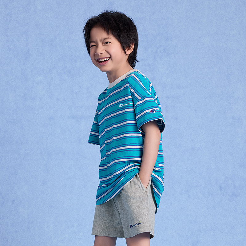 Champion冠军男女儿童装2025夏季新款柔软亲肤LOGO标条纹短袖T恤
