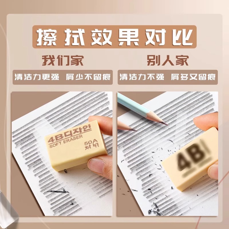 橡皮擦小学生专用4b素描无屑橡皮超干净不留痕儿童擦得干净幼儿园美术生专用2B像皮擦铅笔擦字成线象皮擦相皮