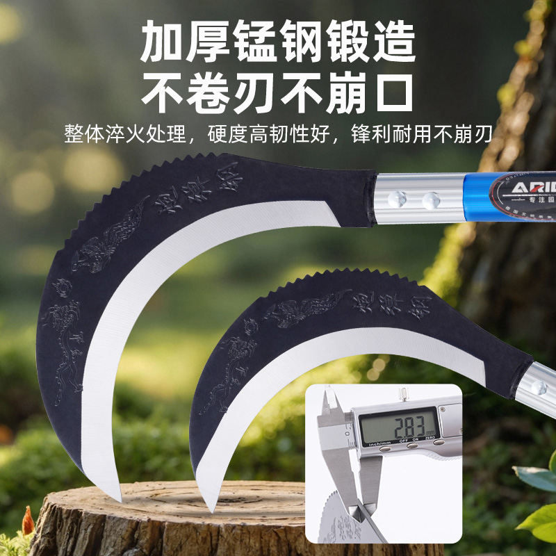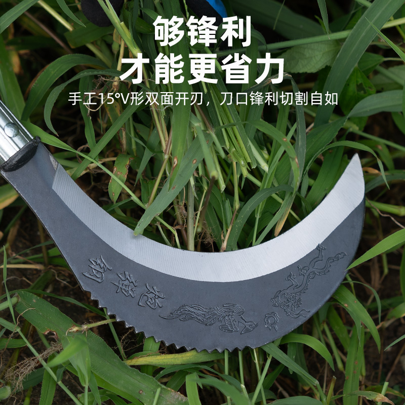 锰钢镰刀砍割两用农用除草神器户外收割玉米秆割草专用刀长柄折叠