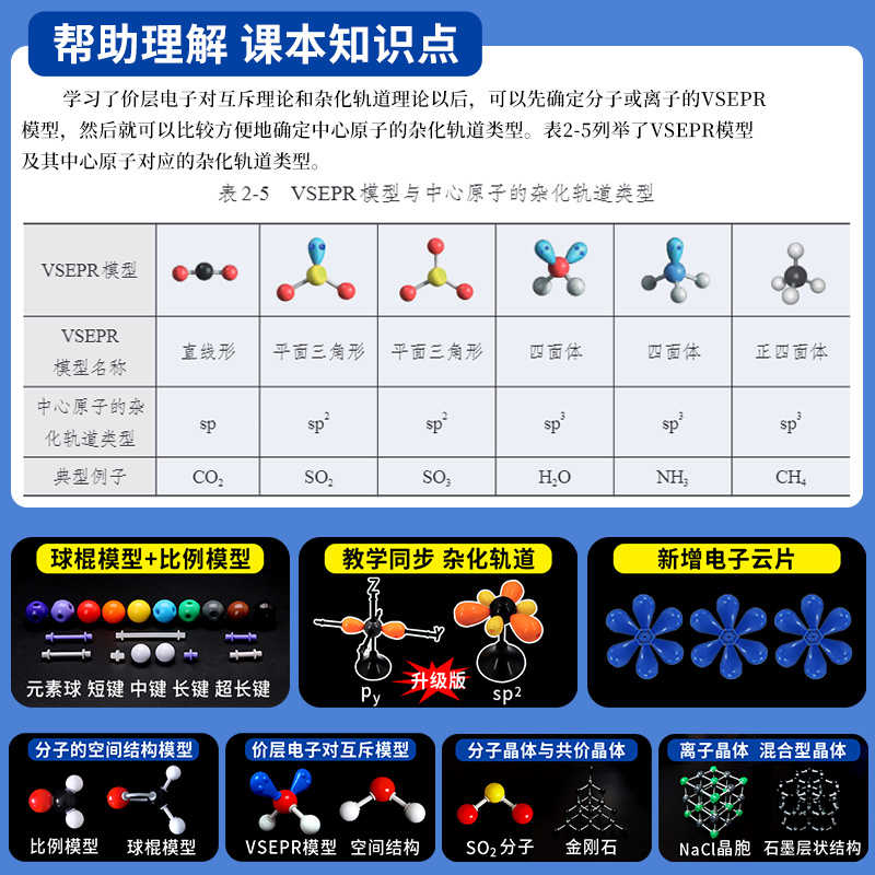 高中有机化学分子结构模型球棍模型比例晶体有机物原子初中演示用实验器材学生老师教具套装用金刚石石墨碳60