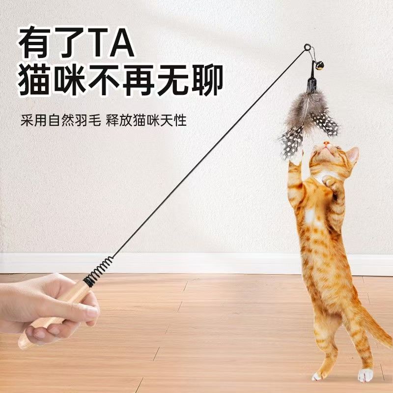 猫玩具逗猫棒猫咪自嗨解闷神器长杆款消耗体力羽毛替换头小猫用品