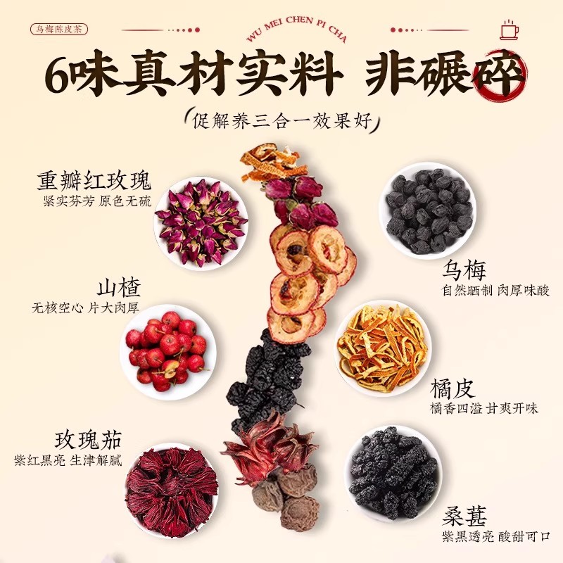 同仁堂乌梅山楂消消茶苹果茯苓桑葚刮油橘皮玫瑰花养生茶去脂茶