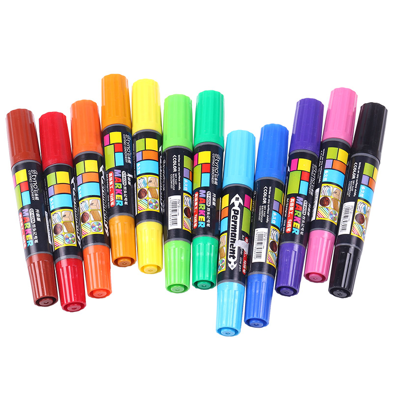 12色油性双头彩色记号笔学生用麦克笔pop写海报的马克笔大头笔一套粗细两头两用儿童海报广告笔专用手绘套装