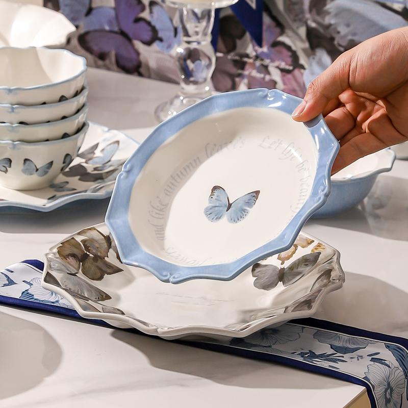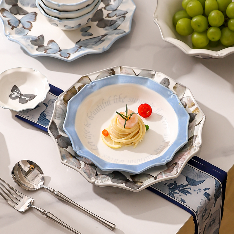 法式奶油风陶瓷碗餐具碗盘套装吃饭碗高颜值轻奢汤碗家用2025新款