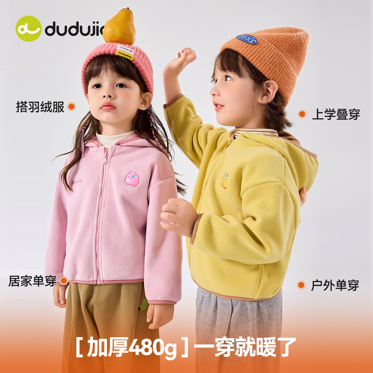 【双面绒】嘟嘟家宝宝加厚外套秋季儿童连帽上衣加绒秋款男童外衫