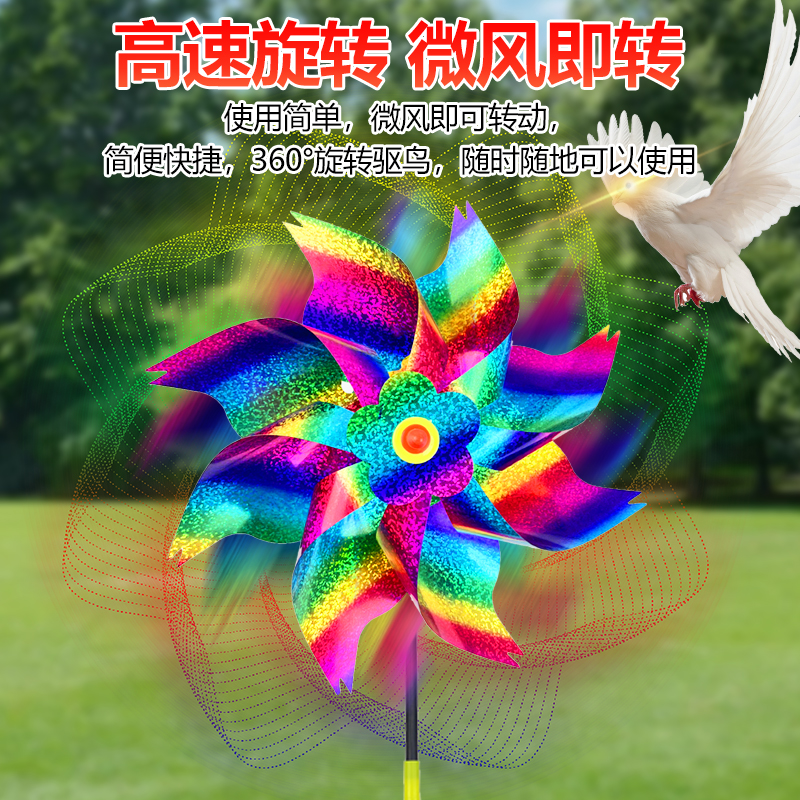 镭射驱鸟风车反光七彩户外室外驱鸟彩色果园专用驱鸟器旋转悬挂