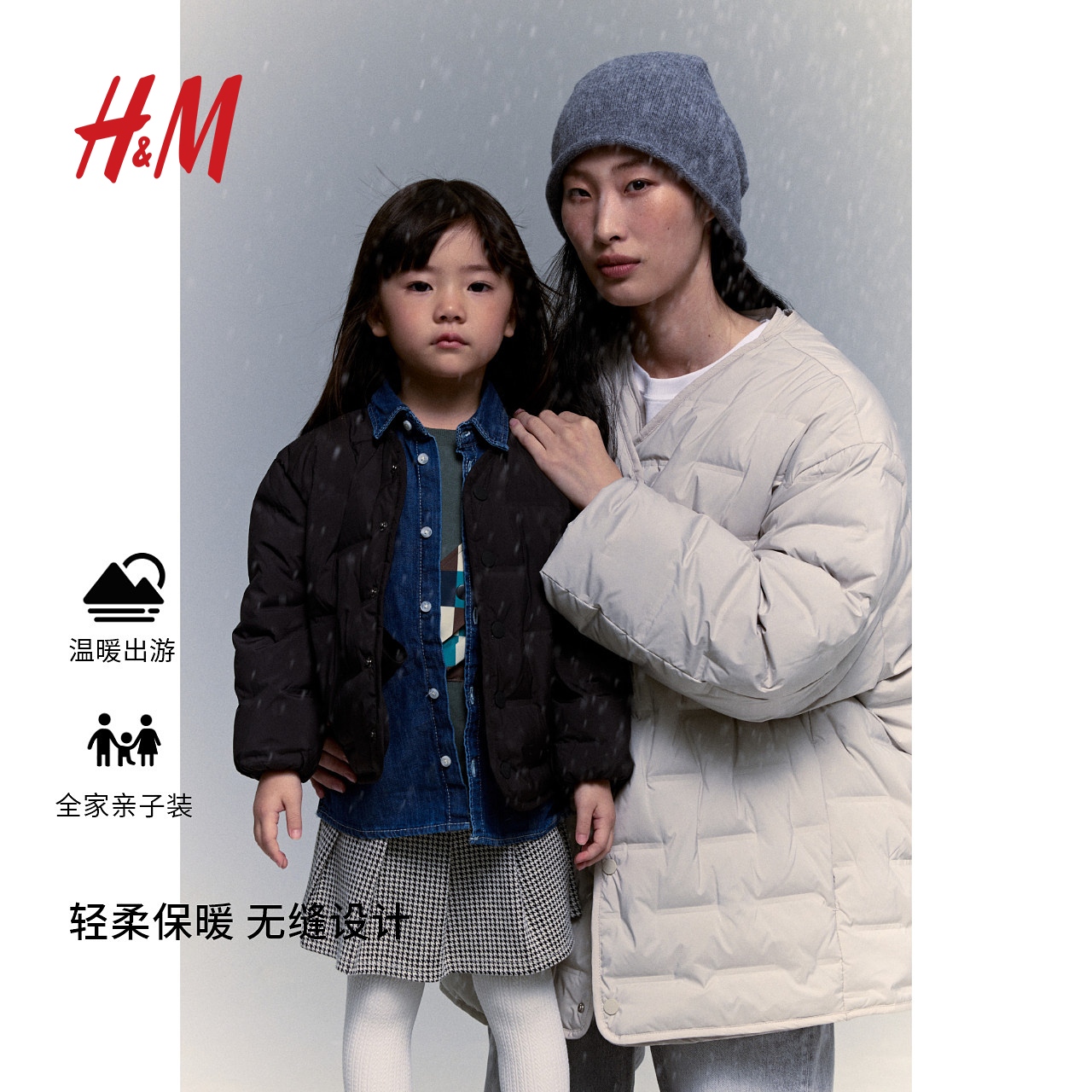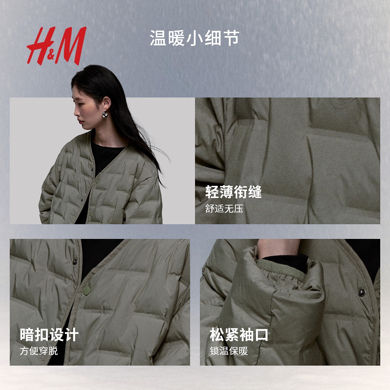HM女装羽绒服冬季宽松V领运动防风疏水轻薄防寒服1238584