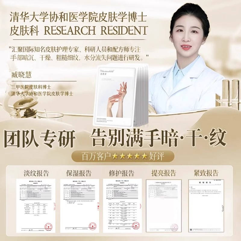手膜补水修复干裂粗糙淡化双手部细纹手套美细嫩白保湿白女手纹