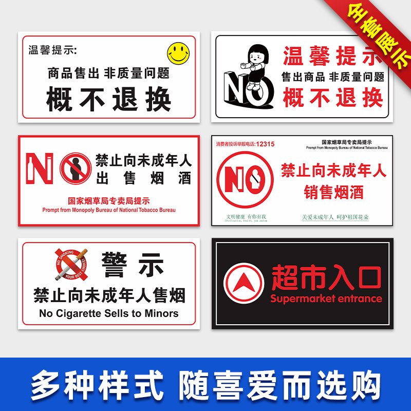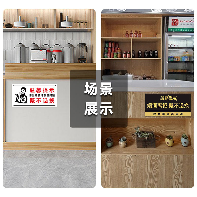 烟酒离柜烟酒售出概不退换提示牌售出商品贴纸标识商店小卖部明码标价谢绝还价一旦卖出概不退换标志超市牌