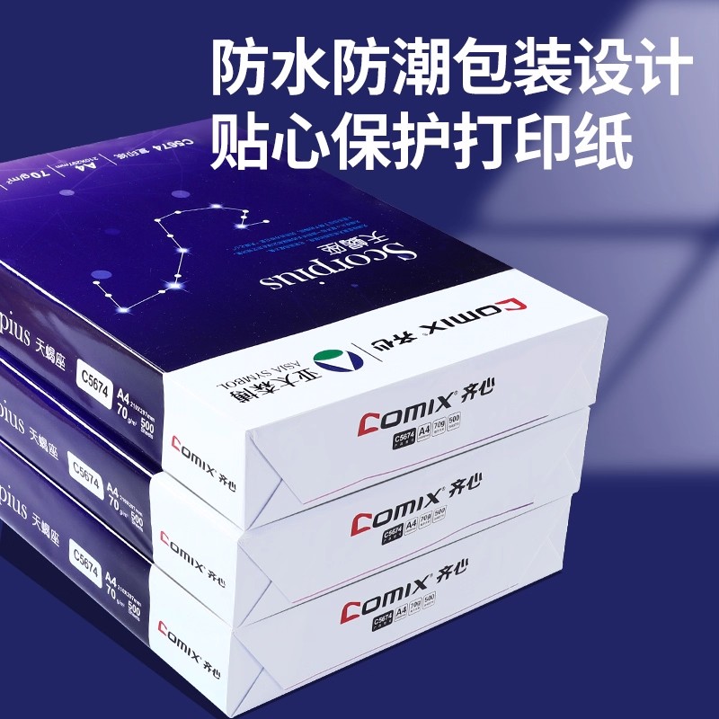 齐心A4打印纸70g/80g复印纸白纸全木浆500张一包整箱批发学生用草稿纸加厚双面打印机专用纸画画用纸5包装1箱