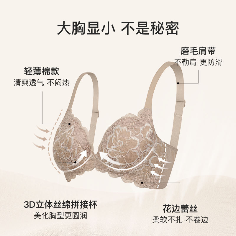 古今内衣女大胸显小性感蕾丝承托调整防外扩防下垂文胸罩