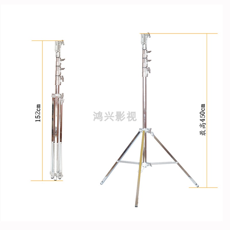 影视灯架6号重型钢腿不锈钢灯架三角灯架支架最高4.5米影视三节钢