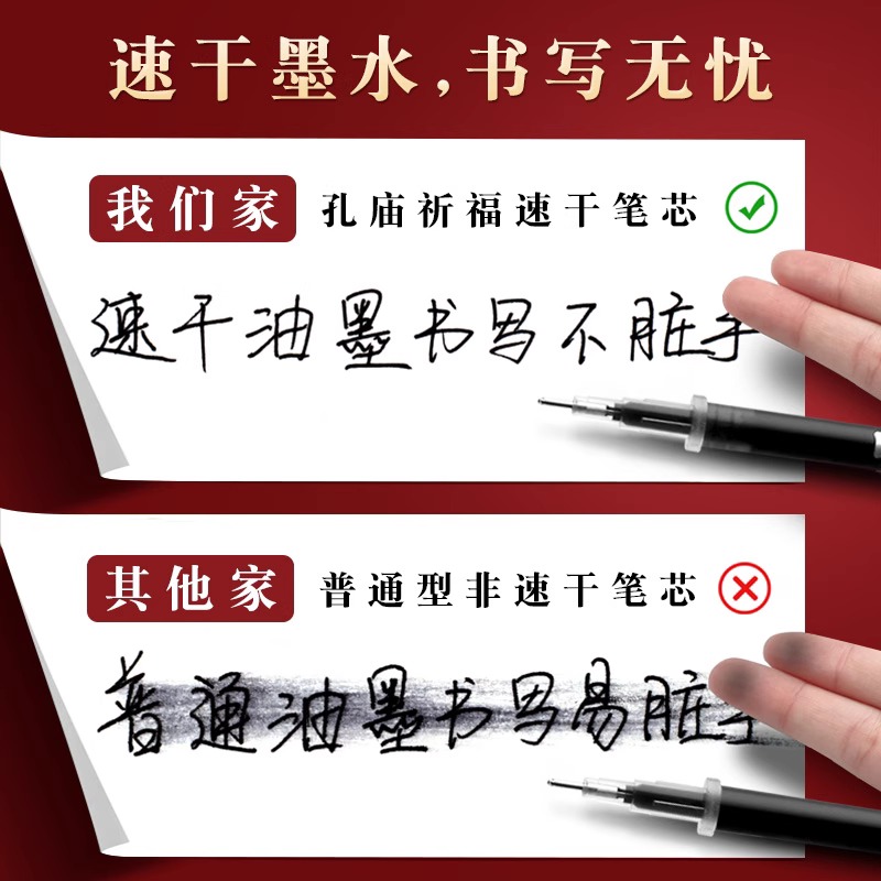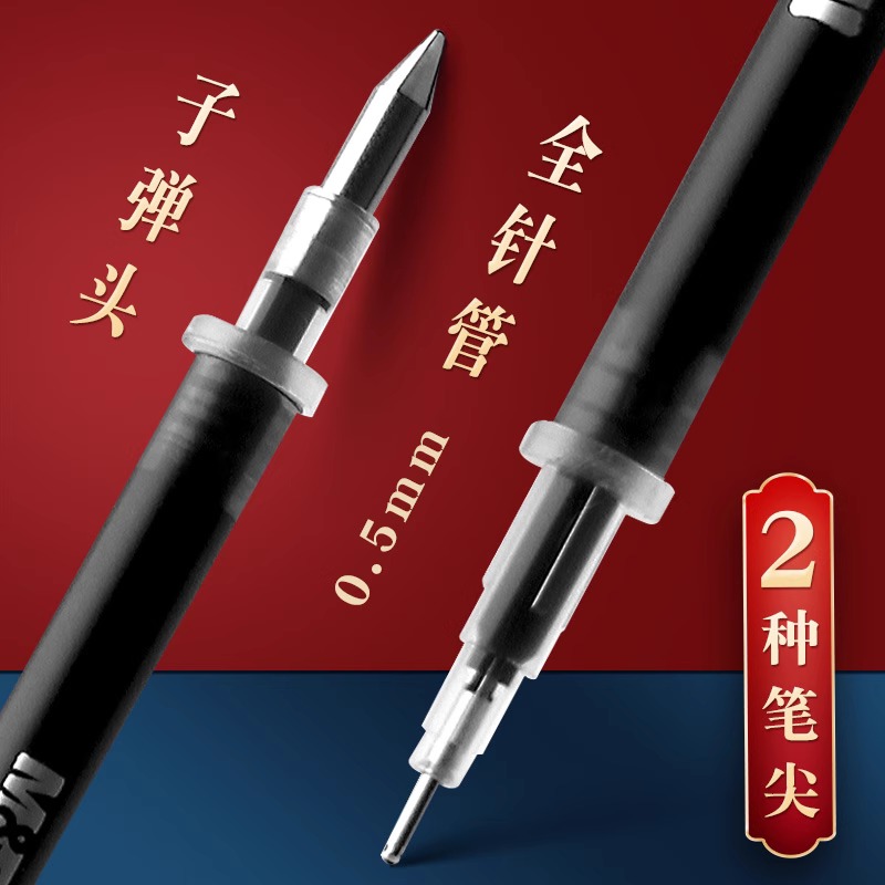 晨光孔庙笔芯0.5mm全针管碳素黑红蓝色0.7中性笔芯st头速干顺滑签字水笔替换芯0.38子弹头0点5比心考试专用