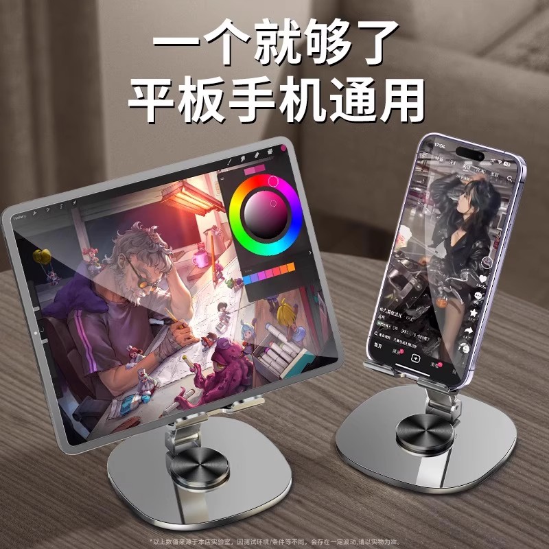 全金属手机支架2025新款桌面懒人360度旋转手机架平板iPad支撑架直播稳固可折叠合金架子多功能车载便携