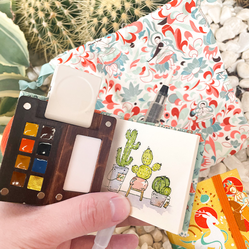 飞乐鸟迷你水彩颜料盒璀璨敦煌15色国风木盒随身便携写生固体水彩分装旅行水彩盒画画调色小画板和小本子套装