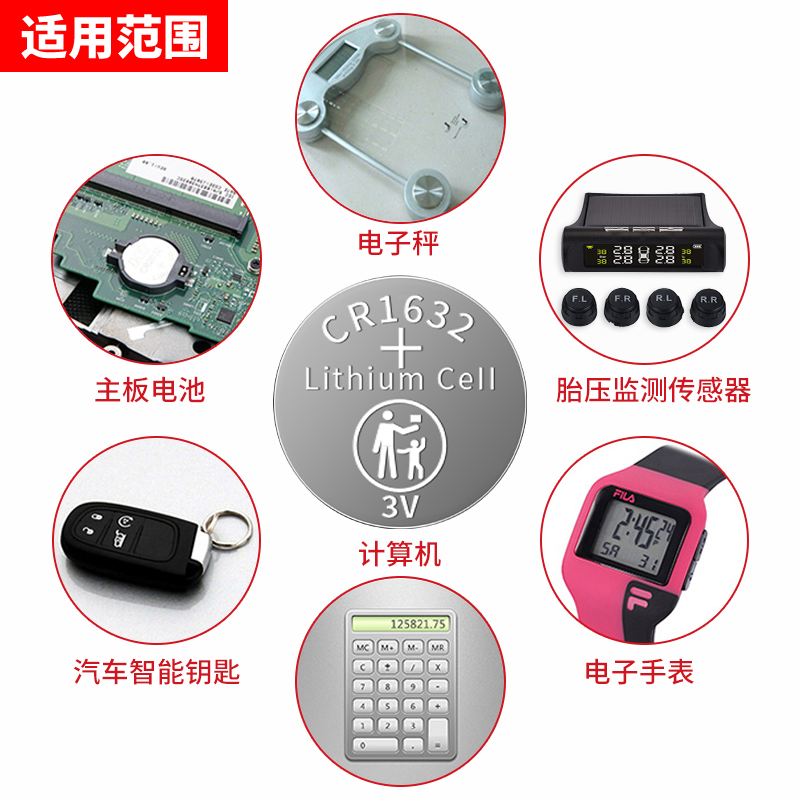 CR1632纽扣电池车电动车钥匙遥控器电池适用于比亚迪S6 F3丰田凯美瑞RAV4钥匙圆形3v胎压监测器防盗器锂电子