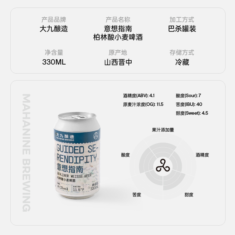大九酿造意想指南柏林酸小麦啤酒精酿330ml易拉罐金桔柠檬酸啤