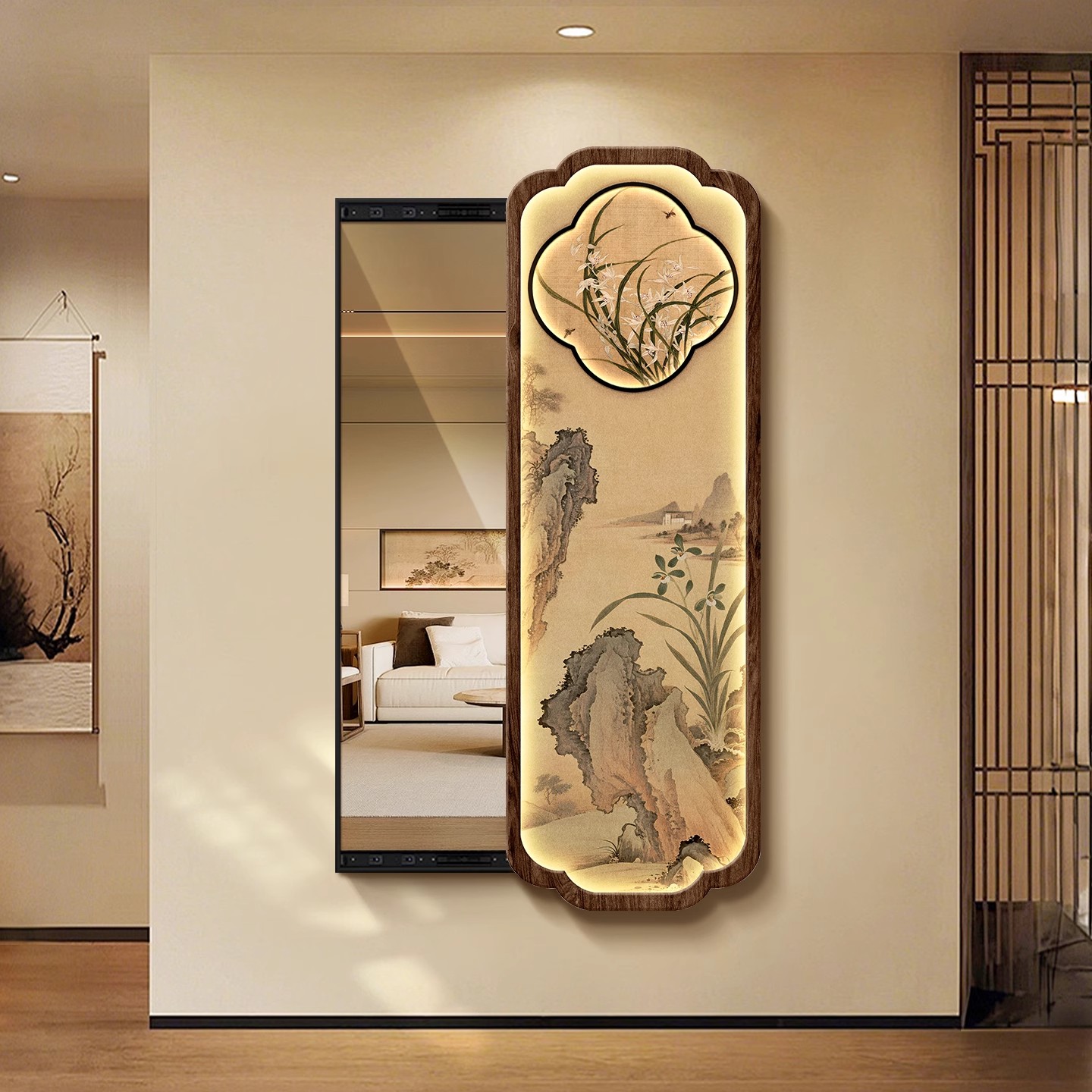 中古风隐藏全身镜装饰画客厅背景墙可关闭穿衣镜挂画出租屋镜子画