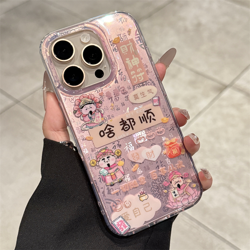 适用苹果16promax手机壳啥都顺财神爷iPhone16新款15pro高级感ip15全包防摔女款por保护套超薄硅胶好看超火的