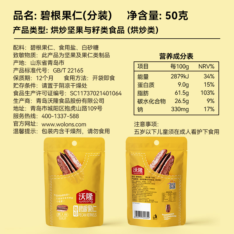 碧根果仁50g*3袋装山核桃仁坚果休闲零食特产长寿果干果小包装