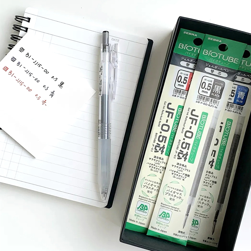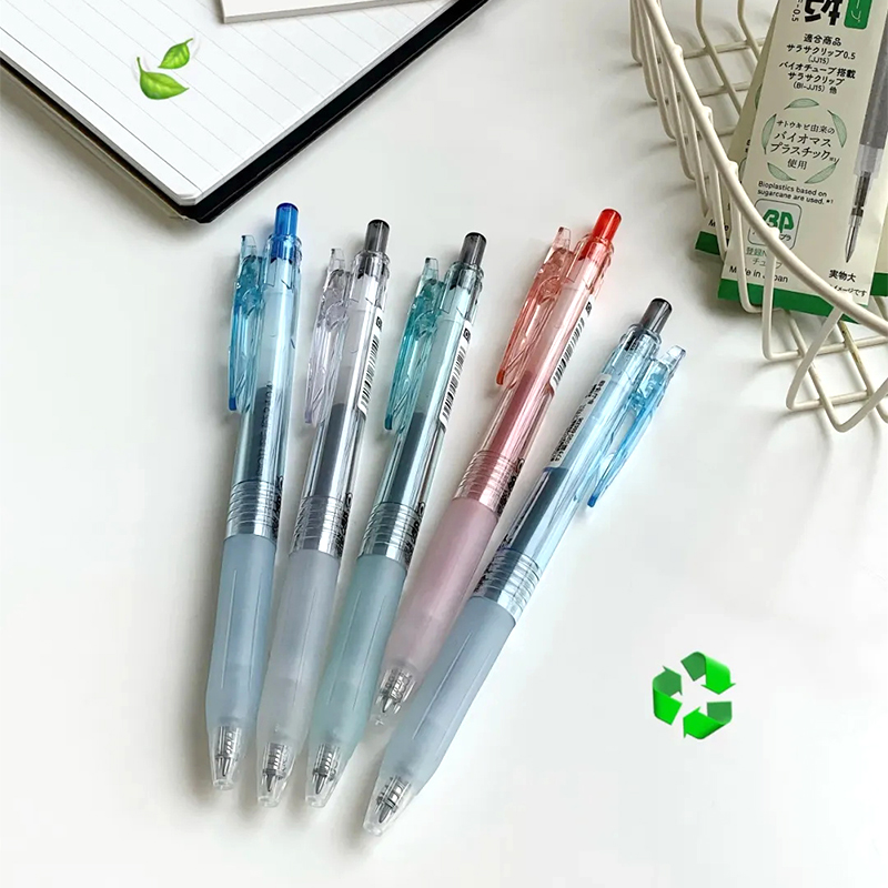 2024新款日本ZEBRA斑马中性笔BIO宝蔗笔JJ15透明高颜值BIOTUBE甘蔗可降解子弹头大容量按动中性笔黑色替芯0.5