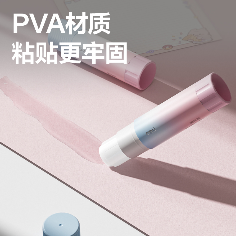 得力固体胶马卡龙多彩渐变强力高粘度文具无甲醛胶棒快干大容量幼儿园儿童学生专用手工课DIY办公财务专用