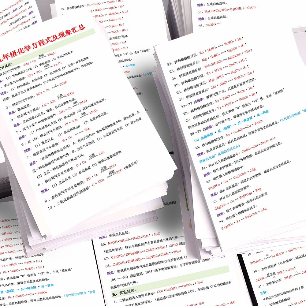九年级化学知识点元素方程式汇总基础化合反应题材解析笔记贴画