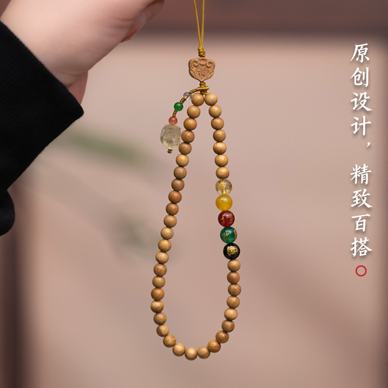 五路财神金丝楠高级感招财手机链男女风手腕挂绳佛珠钥匙包包挂件