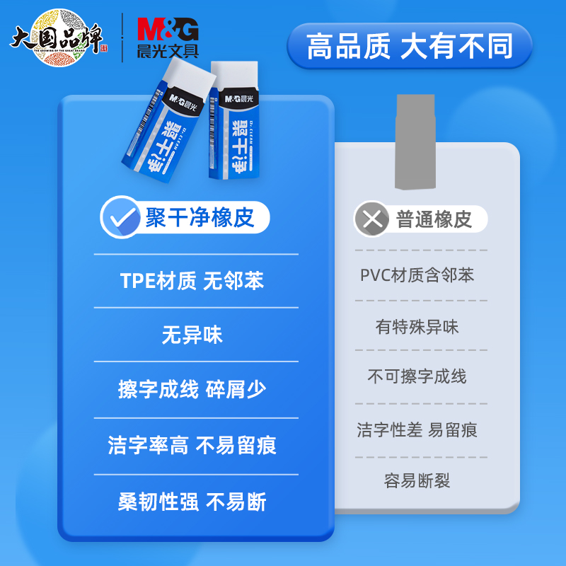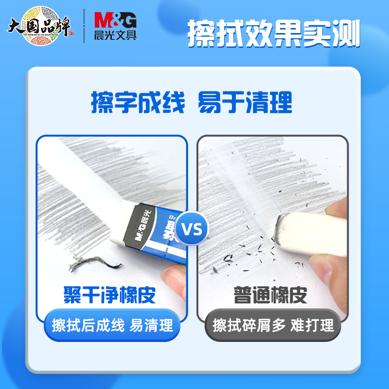 晨光无邻苯少碎屑橡皮擦聚干净擦字成条小学生专用干净不留痕2b铅笔像皮儿童安全无异味象皮素描4b美术专用