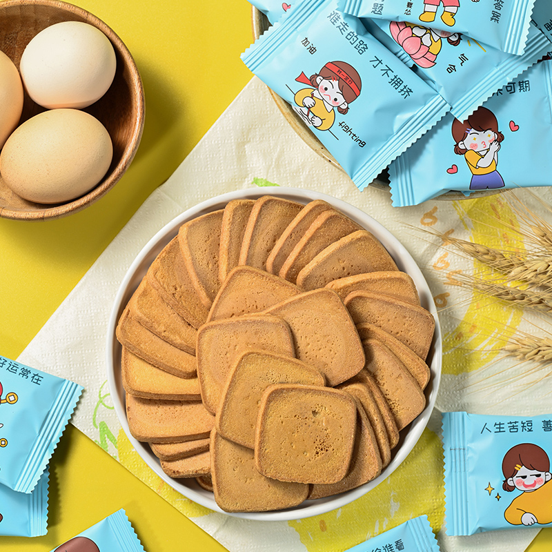 乐观语录鸡蛋煎饼单独小包装趣味可爱网红励志饼干儿童零食干蛋糕