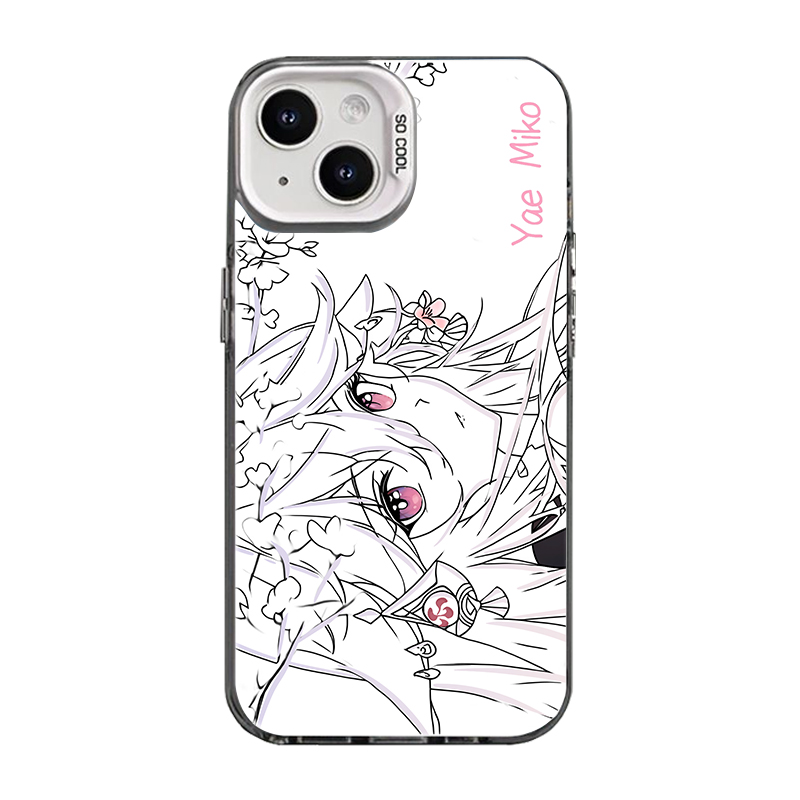 八重神子原神线稿线条反光二次元适用苹果华为荣耀VIVO小米OPPO魅族一加动漫高级感彩银轻磨砂全包防摔手机壳