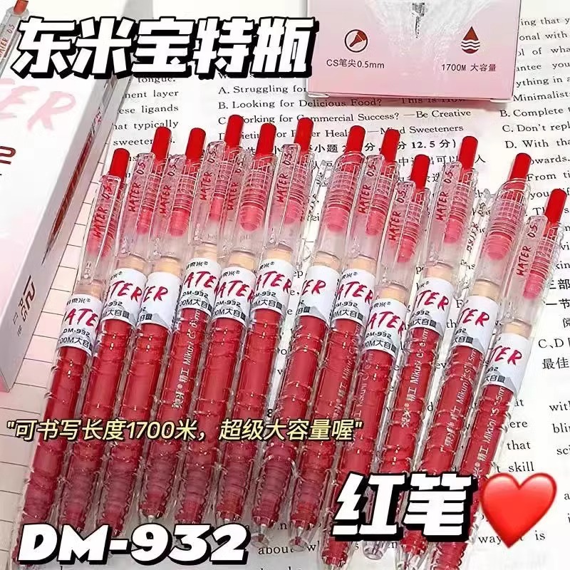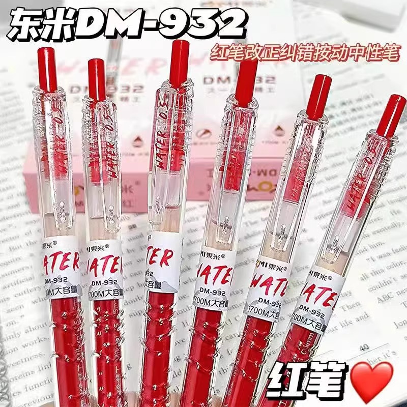 东米红色中性笔老师批改作业专用小初高中学生标注0.5CS笔头按压水笔高颜值透明杆速干顺滑大容量教师节礼物