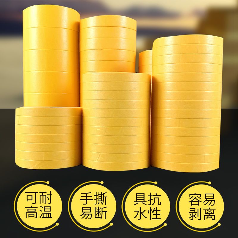 7388黄色和纸美纹胶带外墙水包砂高粘喷漆装修门窗遮蔽分色纸50米