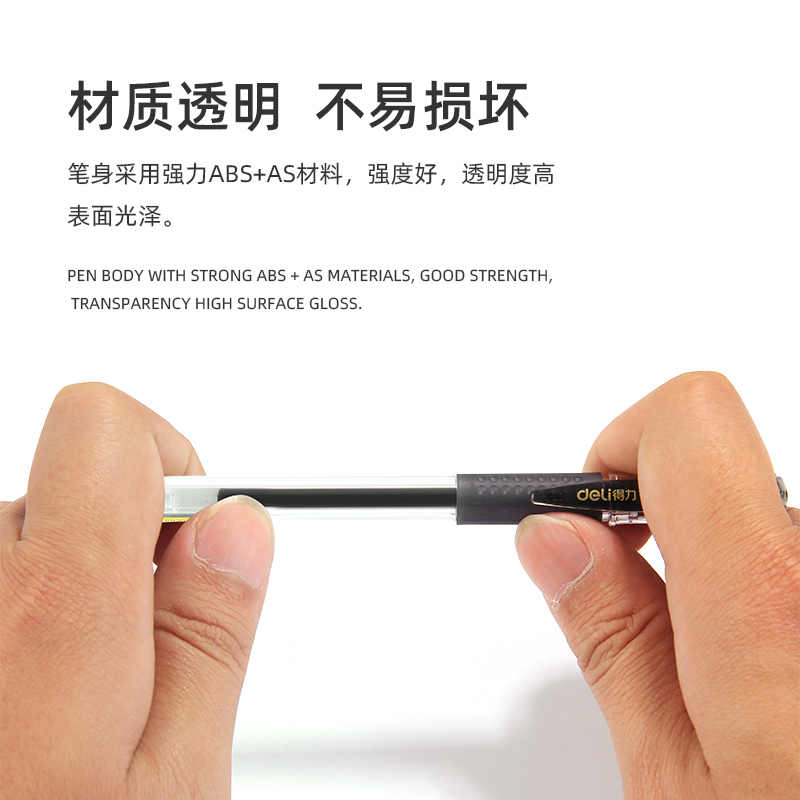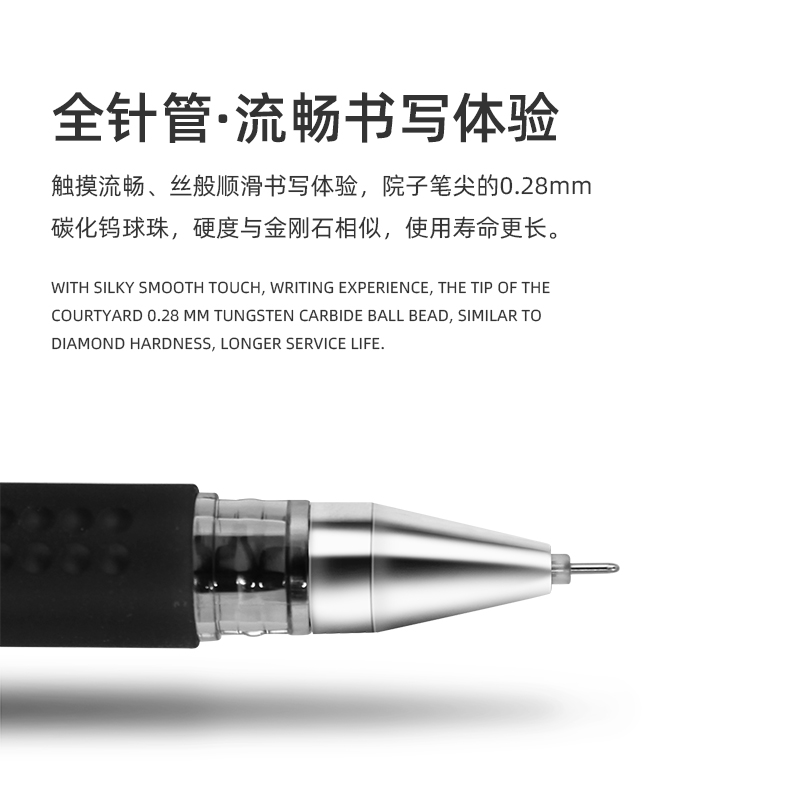 得力中性笔水笔学生用黑色全针管0.28mm极细财务笔水性签字笔碳素笔芯商务高档会计记账特细超细大容量简约