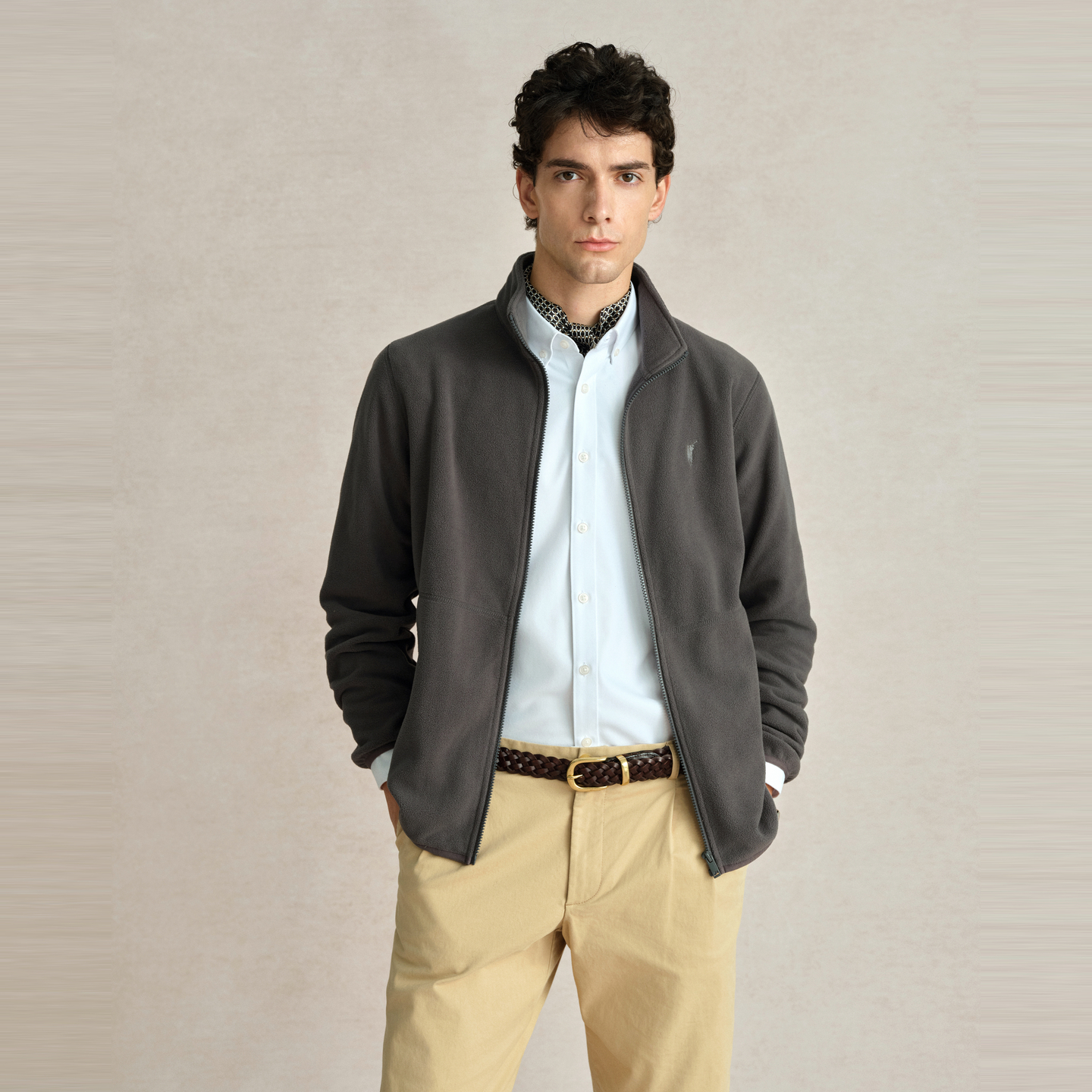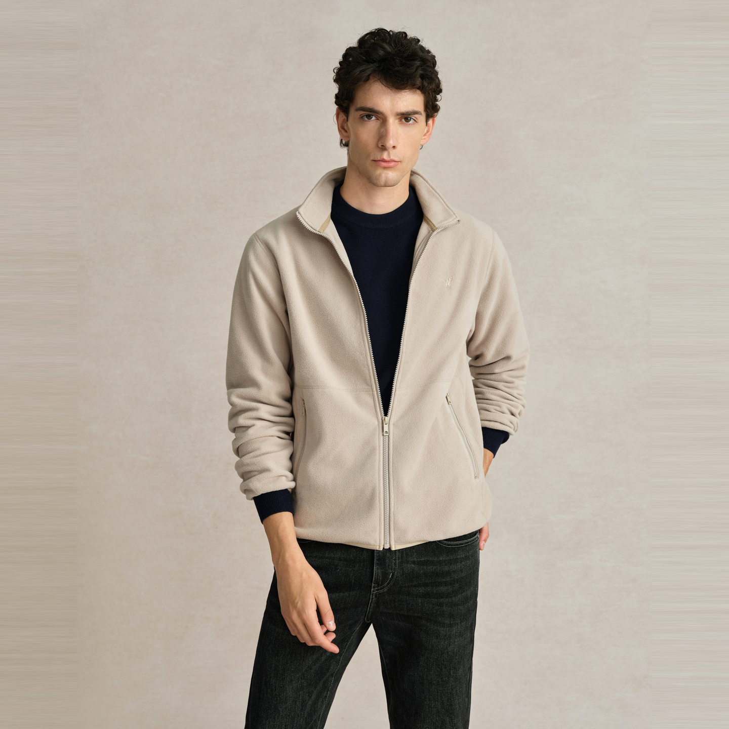 POLOWALK男士立领夹克秋冬新款简约通勤户外摇粒绒外套男保暖上衣