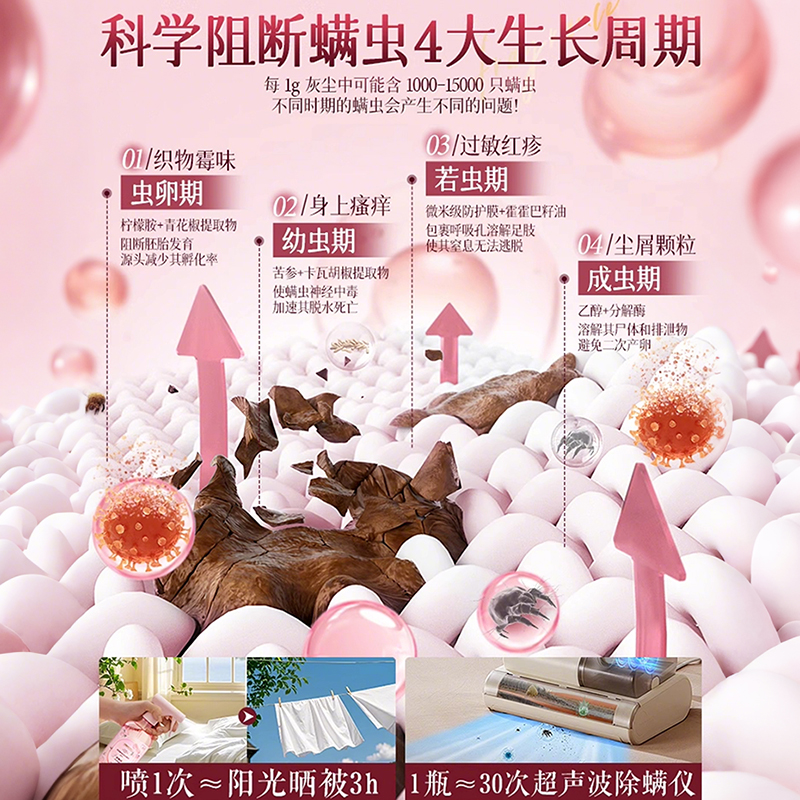 香氛除螨喷雾床上去螨虫杀菌净味神器学生宿舍母婴专用官方旗舰店