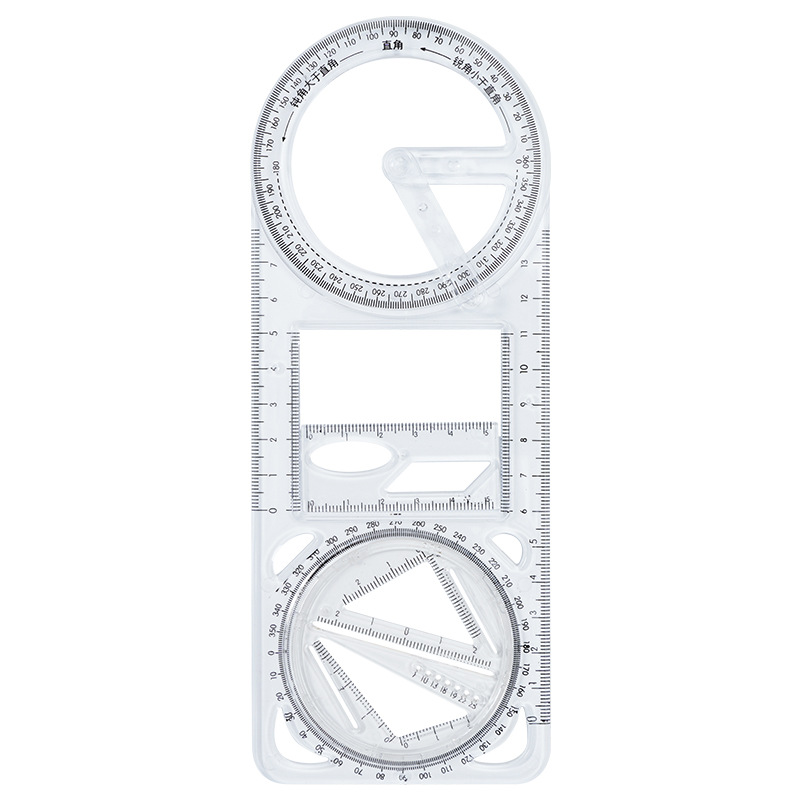 中小学生套尺四件套多功能函数绘画绘图尺可旋转几何尺万花尺量角器文具套装精美果冻色尺子尺20cm直尺高颜值