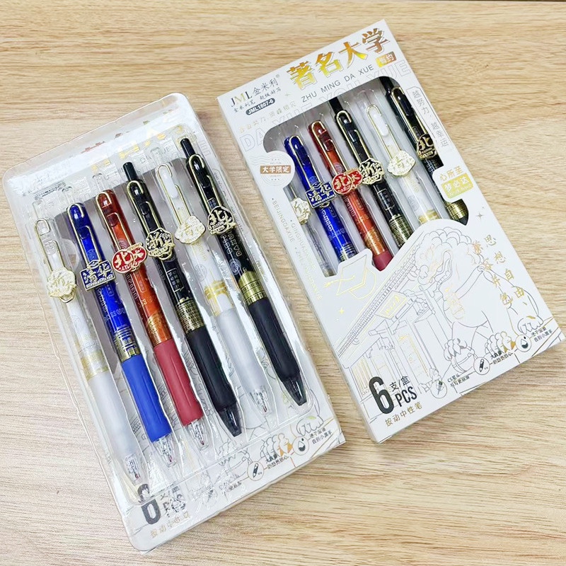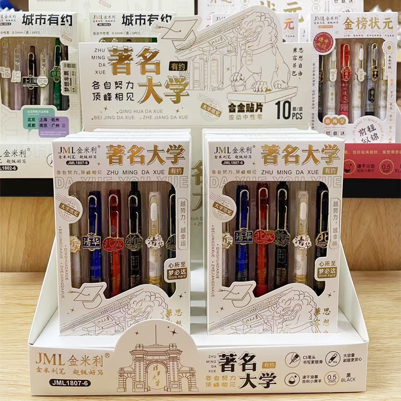 金米利按动中性笔著名大学限定黑色水笔中学生刷题笔ST速干考试用