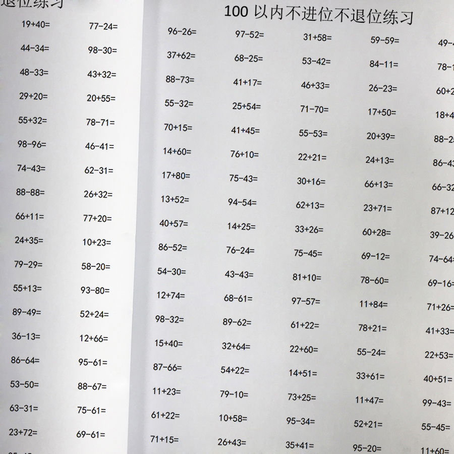 小学100以内两位数加法减法不进位不退位练习本口算算术薄