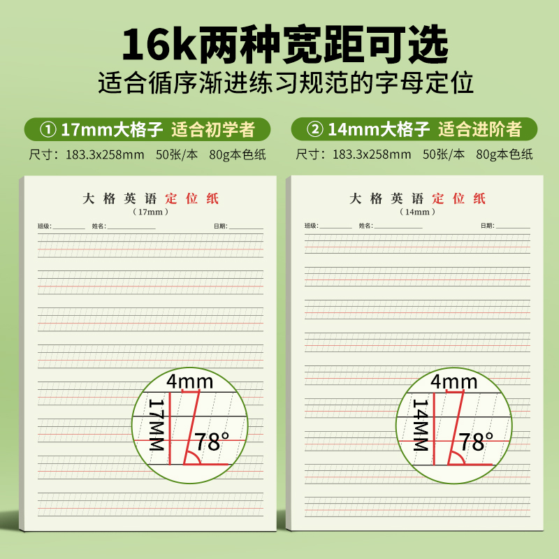 英语定位书写本英语定格初中生专用英文书写小学生初学专用定位本