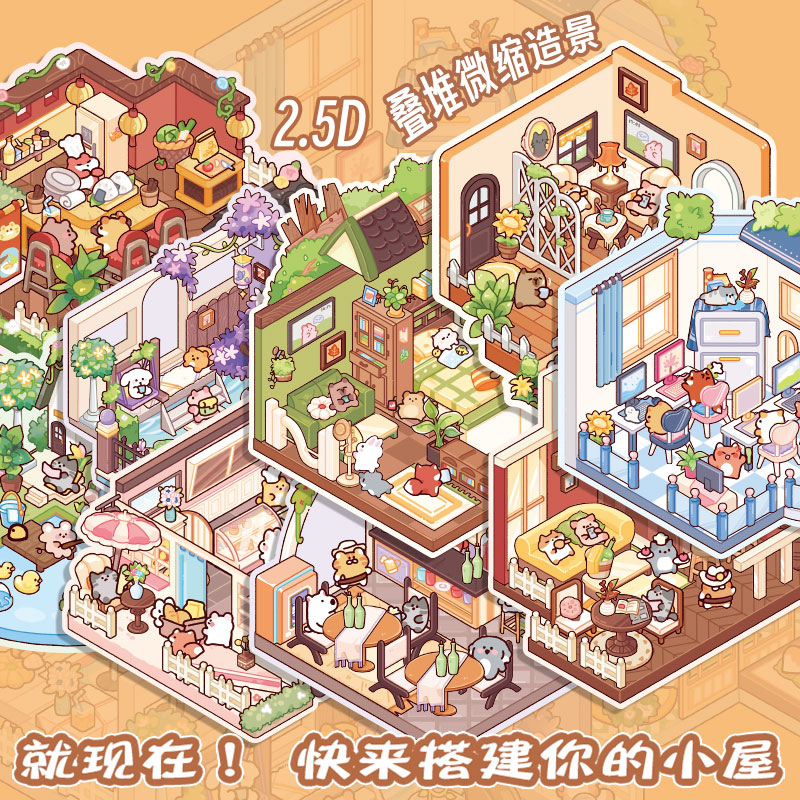 迷你小号造景贴纸微缩场景合集本儿童玩具女孩手账贴纸书3d立体小屋diy网红女孩子打发时间生日礼物10岁以上