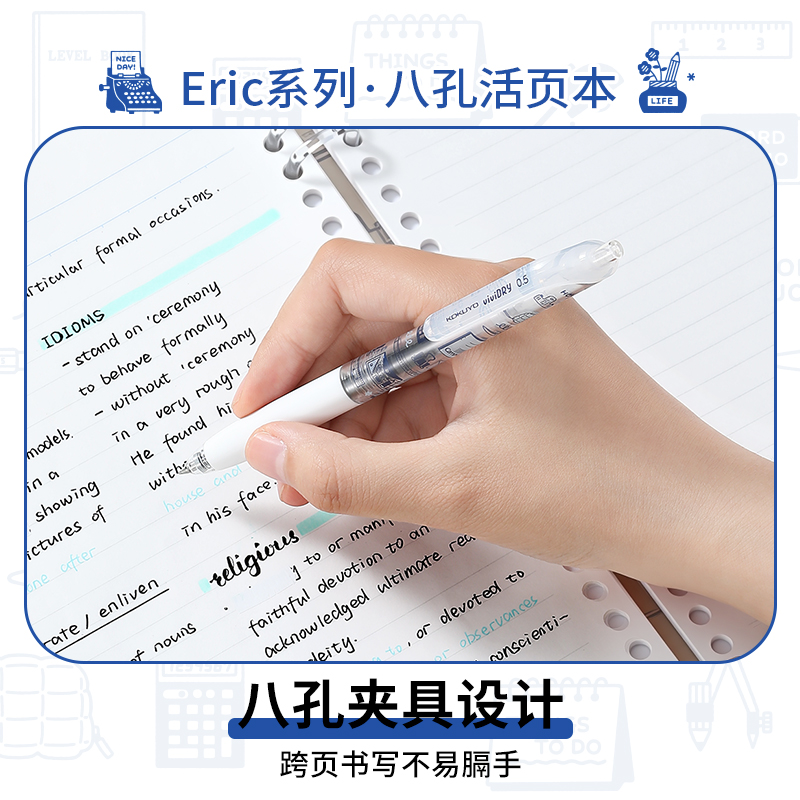 日本KOKUYO国誉eric联名Campus八孔活页本高颜值B5作业本不易硌手可拆卸可换芯考研用本子学生用记事本错题本