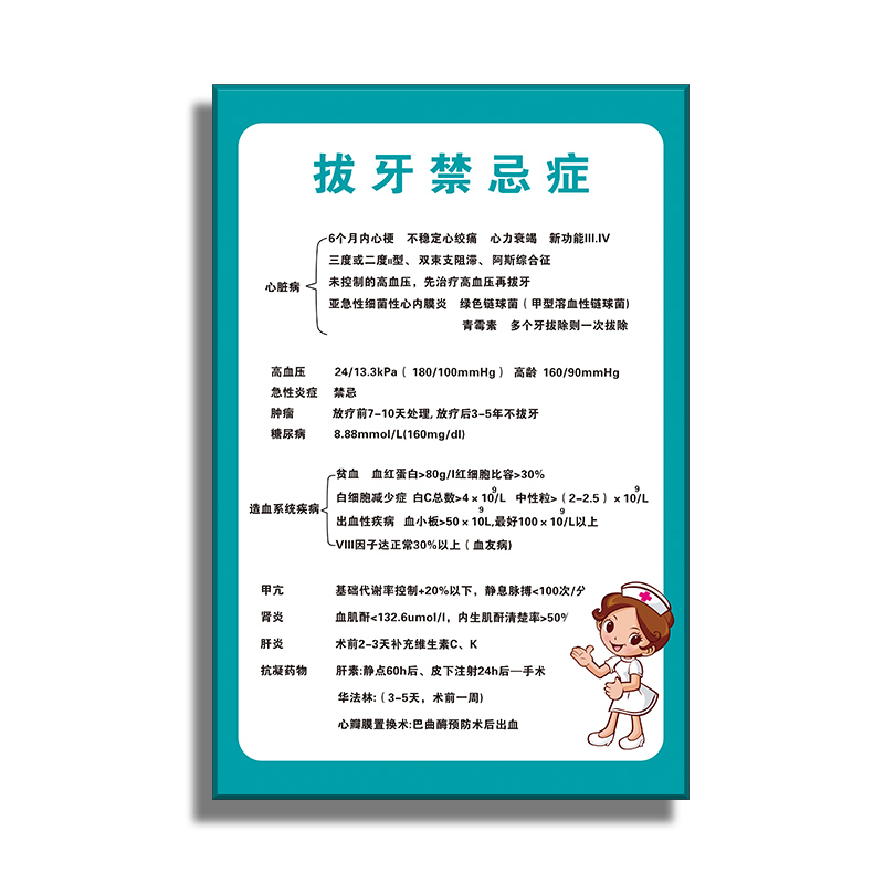 口腔拔牙禁忌症温馨提示牌心脏病高血压疾病牙科门诊所亚克力牌