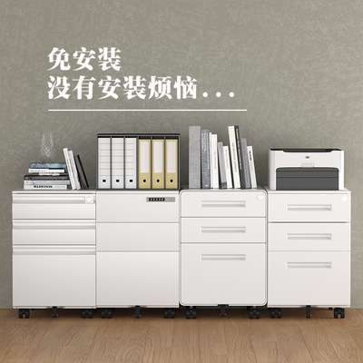 跨境钢制办公室桌下活动柜圆弧三抽屉可移动挂捞文件收纳带锁矮柜