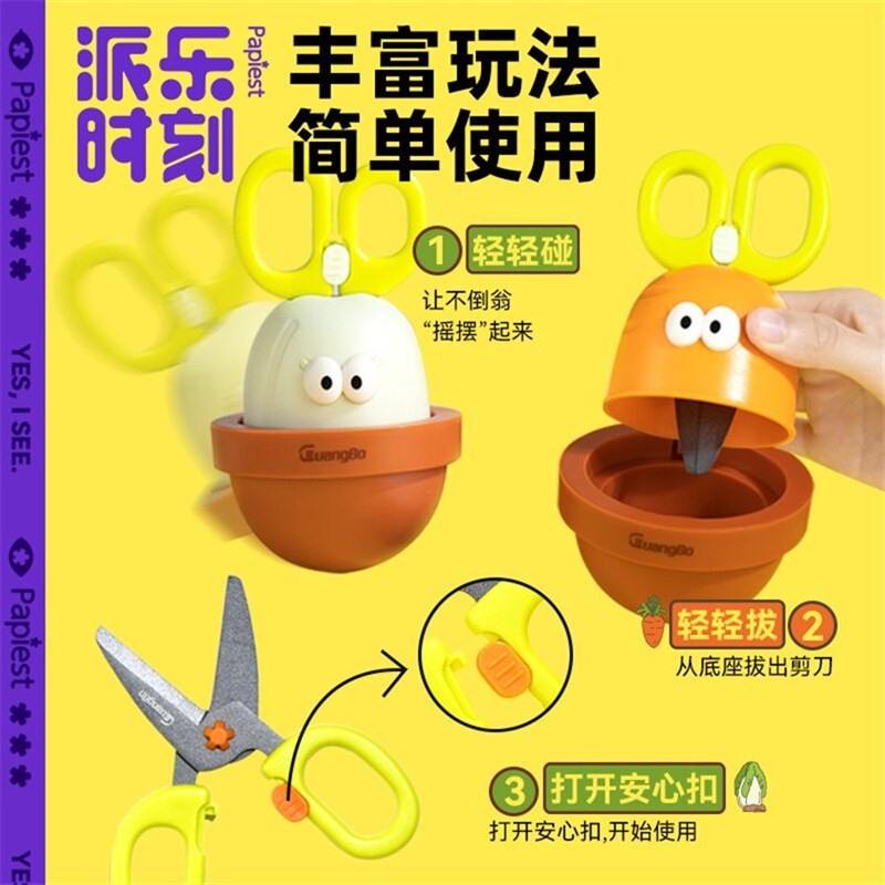 儿童剪刀安全手工剪纸安全不倒翁胡萝H卜迷你可爱锁边便携高颜值