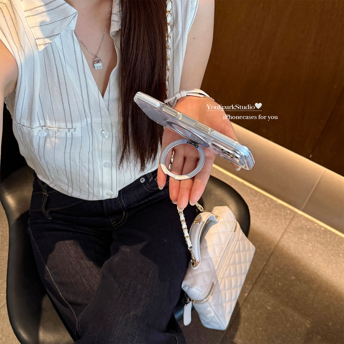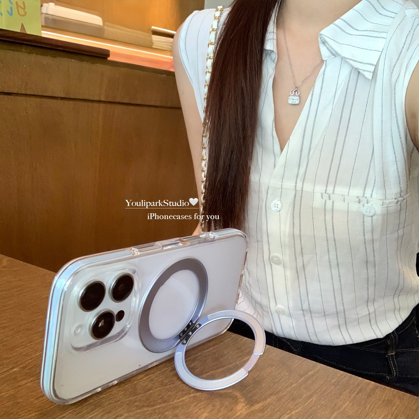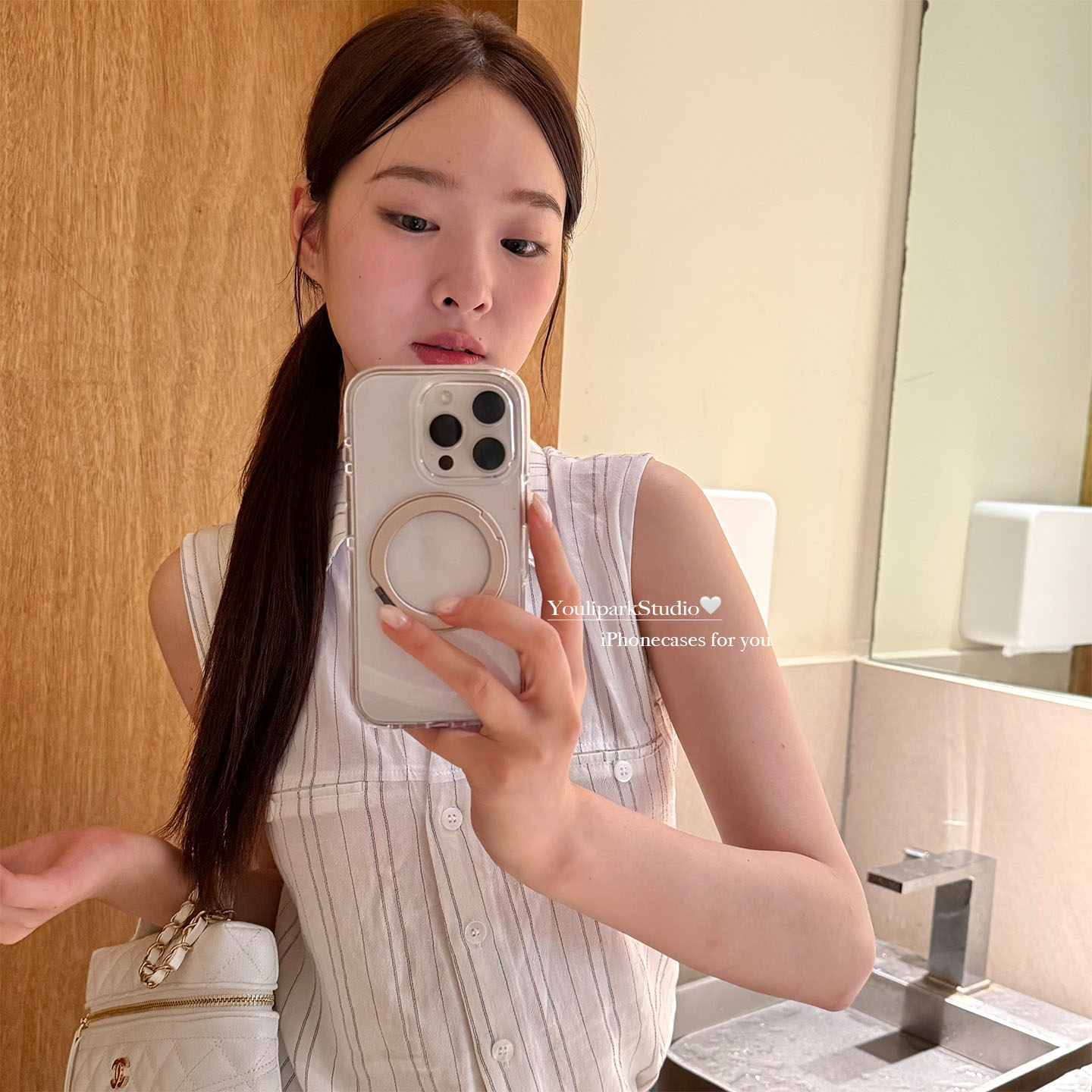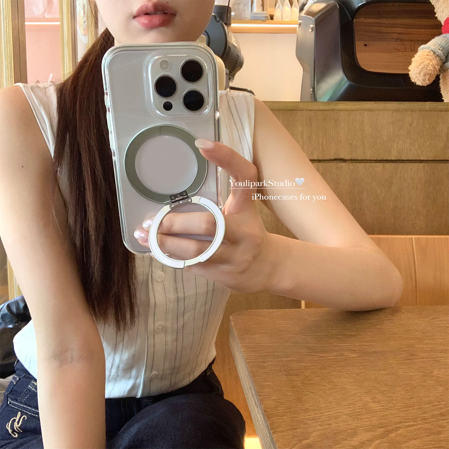 由里公园ins极简高级感透明旋转磁吸支架15适用17pro苹果17ProMax手机壳iPhone16全包17新款14Promax保护套女